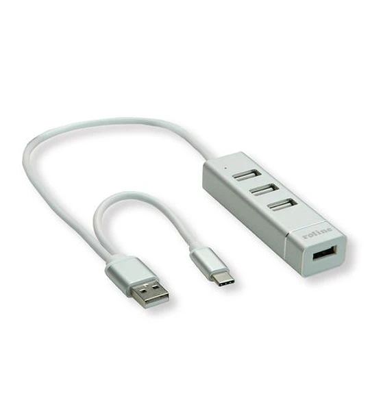 Manufacturer: ROLINE Product group: Hubs Product type: USB Hub Colour: silver Length: 0.3 m Scope of delivery: Hub, attached USB cables (30 cm...