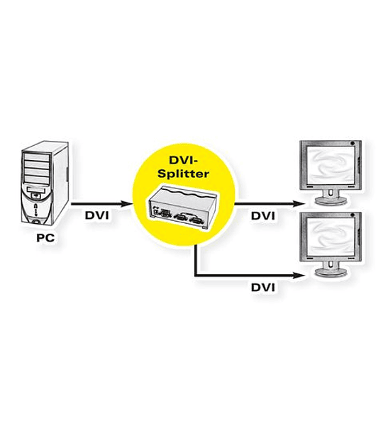 Manufacturer: VALUE Product group: Splitters and selectors Product type: DVI-Video-Splitter Colour: black Scope of delivery: Splitter, main ada...